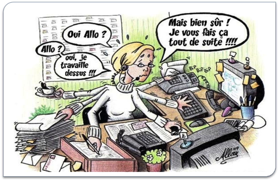 Vous devez analyser visuellement l’environnement de travail et identifier les problèmes liés à l’organisation, à la surcharge, aux interruptions ou aux priorités mal gérées.